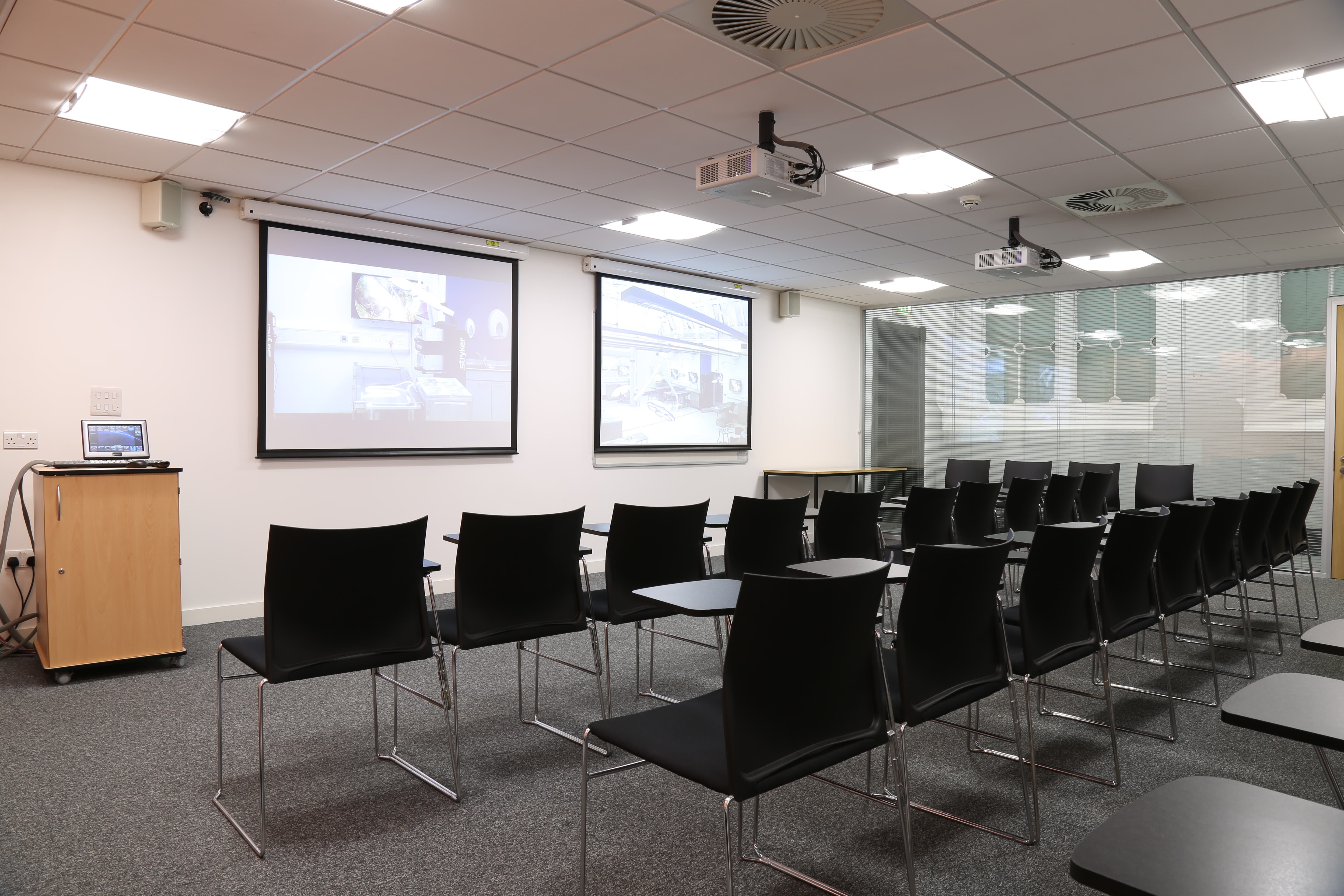As well as this, full recording and playback capabilities are available, with wall‑mounted, high‑definition monitors at every station and full selection of laparoscopic instruments for training and demonstration.